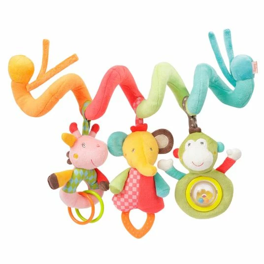 Tipp: Die Spirale lässt sich dank Ihrer Form auch prima am Bügel des Buggys, Bettchen oder Laufgitter Ihres Babys befestigen.