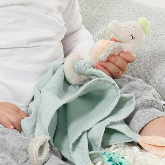 Sobald die kleinen Babyhändchen dazu in der Lage sind, greifen sie gerne nach einem Tuch zum Kuscheln. Besonders in stressigen Situationen gibt ihnen ein Schnuffeltuch mehr Sicherheit. Das Fehn Schmusetuch Seepferd ist ein flauschiger, treuer Begleiter für jede Alltagssituation, den Dein Nachwuchs immer bei sich haben kann. Das Seepferdchen und das daran befestigte Tuch sind mit flauschigen Details ausgestattet, die zum Fühlen und Greifen anregen. So möchte Dein Kleines es am liebsten gar nicht mehr aus seinen Händchen geben.