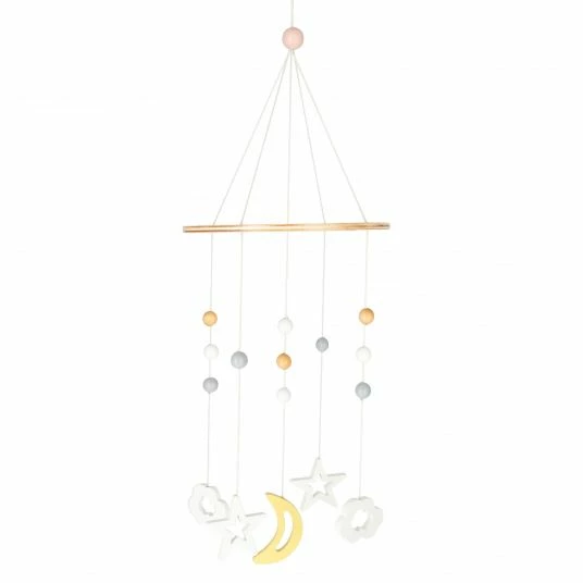 Ob als Einschlaf- oder Beruhigungshilfe, das Bieco Mobile Sternenhimmel ist ein zauberhafter Blickfang im Babyzimmer. Die schönen Holzelemente mit Mond, Sternen und Wolken in zarten Farbtönen laden zum Beobachten und Entspannen ein. Über der Wickelkommode angebracht, ist das Mobile eine schöne Ablenkung. Über dem Kinderbettchen dient es als Einschlafhilfe und begleitet Dein Kleines sanft in das Land der Träume.