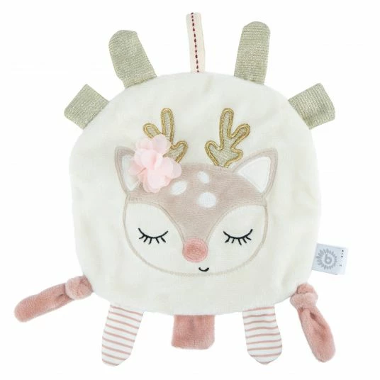 Ob Zuhause oder für unterwegs, mit dem Bieco Knistertuch – Reh Ella hat Dein kleiner Liebling immer kuscheligen Spielspaß bei sich. Das Knistertuch ist mit verschiedenen Etiketten, Knoten und einer süßen Reh-Applikation ausgestattet. Auch die Stoffe fühlen sich unterschiedlich an. So wird die Neugierde Deines kleinen Entdeckers geweckt und das Tuch mit allen Sinnen erkundet. Das Knisterpapier im Inneren ist dabei besonders spannend und sorgt für gute Laune.