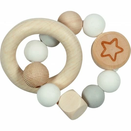 Goki Elastik – Greifling mit Silikonperlen – Sternchen – Grau