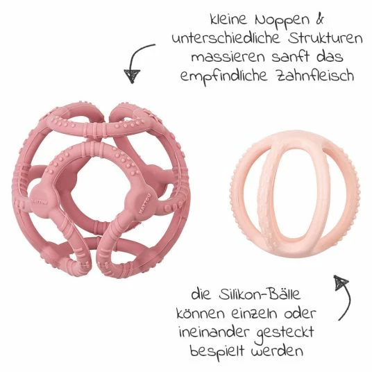 2- teiliges Nattou-Set mit Silikon-Bällen in Pink