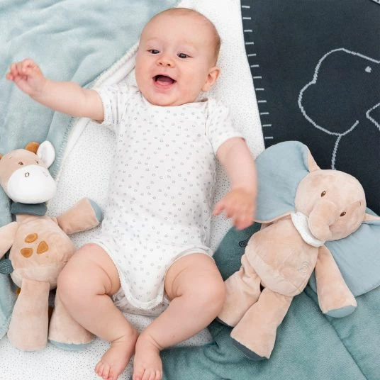 Für die Kleinen ist vieles in der Welt noch unbekannt, Fremdes kann sogar Angst machen. Der treue Kuschelfreund, der Nattou Kuscheltier Elefant Axel gibt Deinem Engel mehr Sicherheit. So kann Dein Kleines sich doch einmal mutig trauen, etwas ohne Mama oder Papa zu machen, denn es hat ja seinen Beschützer mit dabei. Niedliche Details wie zwei große Ohren, einen Elefantenrüssel, ein Halstuch oder das freundliche, aufgestickte Elefantengesicht motivieren Dein Baby zum Greifen und Tasten.