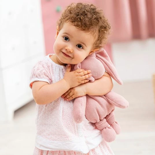 Ein treuer Begleiter und Spielgefährte ist das süße Strick-Kuscheltier Hase Lapidou von Nattou für Deinen kleinen Schatz. Sein super weiches Fell aus rosafarbenen Strick-Stoff fühlt sich angenehm weich an und lädt zu langen Schmuse- und Kuscheleinheiten ein. Dein Liebling wird seinen Schmusehasen nicht mehr missen wollen. An seinen extra langen Ohren kann das Häschen auch von den Kleinsten prima überall hin getragen werden.