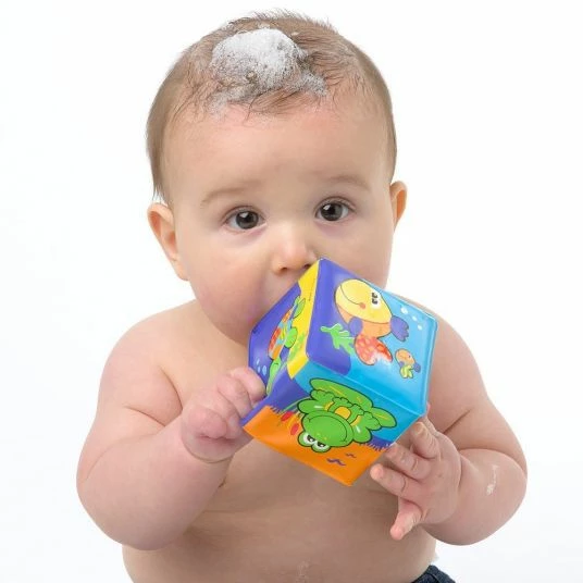 Damit ist Spaß im Bad garantiert: Die 6 weichen Badespielwürfel von playgro haben lustige, bunte Meer-Motive und sorgen während Babys Bad dafür; dass keine Langeweile aufkommt. Auch außerhalb der Badewanne können die Würfel bedenkenlos gedrückt; gestapelt und wieder umgeworfen werden, denn durch das weiche Material besteht keine Verletzungsgefahr.