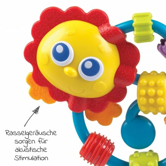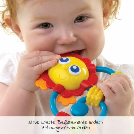 Mit dem niedlichen Spielzeug Playgro Rassel / Beißring Curly Critter – Löwe kommt bei Deinem kleinen Weltentdecker so schnell keine Langeweile auf. Die farbenfrohe Kombination aus Beißring und Rassel bringt viele Unterhaltungs- und Spielmöglichkeiten mit sich. Dein Liebling schult seine Sinne und Fähigkeiten dank der vielen Greifmöglichkeiten und beweglichen Perlen. Nebenbei lindert das härtere Material mit unterschiedlichen Strukturen Zahnschmerzen und beruhigt den wunden Gaumen. Ideal auch für unterwegs im Auto oder Supermarkt damit keine Langeweile aufkommt.