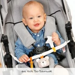 Der fantasievolle Anhänger für die Babyschale Fledermaus – Baby Bite Me von Sigikid sorgt für Spielspaß unterwegs. Ganz wie im echten Leben hängt das kleine Tierchen kopfüber am Tragegriff der Babyschale. Befestigt werden die Füße mit einem Klettverschluss. Nun tanzt die Fledermaus über Ihrem Nachwuchs und weckt die Neugierde Ihres Babys. Das weiche Material regt zum Greifen, Spielen und Entdecken an und der Rassel-Ring macht lustige Geräusche. Die Flügel sind mit Knisterpapier gefüllt und im Bauch steckt eine Quietsche. So wird es Ihrem Kind bestimmt nicht langweilig und der beste Spielfreund ist immer mit an Board.