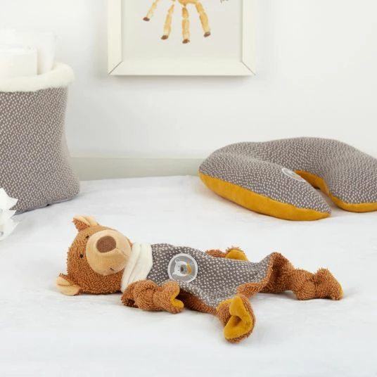 Der putzige, Schnuffel-Bär ist auch später noch der allerbeste Zuhörer und bleibt gerne in der Nacht als Einschlafhelfer oder im Kindergarten zum Liebhaben und Spielen da. Mit kuscheligem, hautfreundlichen Bärenkörper mit hohem Baumwollanteil fühlt sich das Bärchen besonders weich an. Wird es einmal schmutzig, kannst Du es per Maschinenwäsche bei 30°C reinigen.