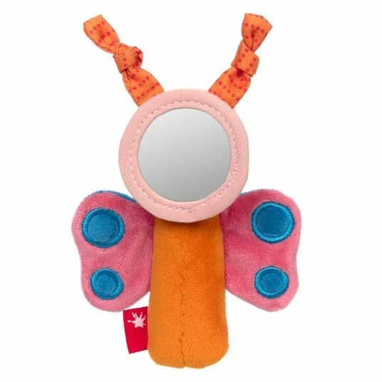 Das fröhliche Tier mit aufgesticktem Gesicht lässt sich durch seine Stab-Form sehr gut von Babyhändchen festhalten und greifen. Es enthält sogar eine kleine Rassel, die zu Bewegungen motiviert. Das Geräusch bereitet Deinem Weltentdecker besonders viel Freude und schult das Gehör. Mit dem Spiegel auf der Rückseite des Köpfchens kann sich Dein Baby selbst entdecken. Für die kleinen zarten Babyhändchen liegt der Schmetterling mit flauschig weichem Stoff dabei sehr angenehm in der Hand.