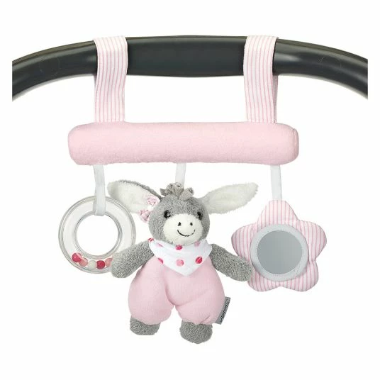 Das Trapez mit niedlichen Spielelementen lädt zum Greifen, Tasten und Betrachten ein. Die bunten Farben und Musterungen sind für die kleinen Babyaugen sehr interessant, während die Rassel zum Schütteln animiert. Flexibel anbringbar, beispielsweise am Kinderbettchen oder am Griff der Babyschale, bietet das Spielzeug eine tolle Beschäftigungsmöglichkeit. Das hübsche Design mit dem flauschigen Esel Emmi macht es zu einer tollen Geschenkidee für neugierige Entdecker.