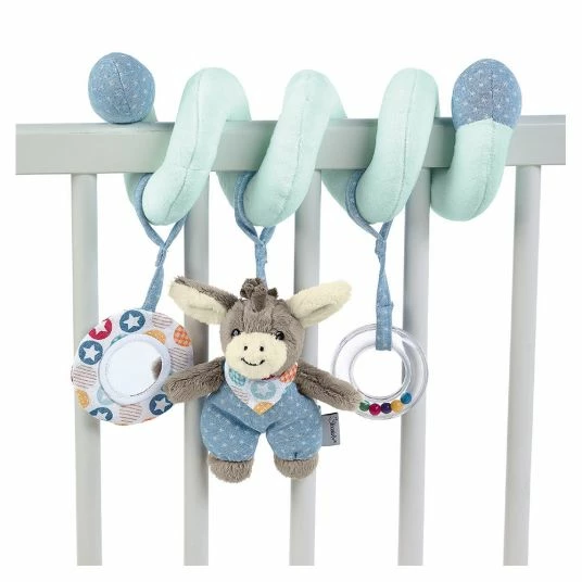 Mit der Spiel-Spirale Emmi von Sterntaler kommt zu Hause und unterwegs keine Langeweile auf. Aufgrund seiner flexiblen Form kann das Spielzeug an Gitterbettchen, Babyschale, Laufgitter usw. angebracht werden. So ist das weiche Kuschelspielzeug in greifbarer Nähe Deines Babys. Unterschiedliche Materialien, Formen und Farben wecken die Neugier Deines Kindes. Die Figuren sorgen mit integrierten Rasseln und Spiegel für viel Spannung und Spaß. Zum Reinigen kann die Spielzeug Spirale bequem in die Waschmaschine gegeben werden.