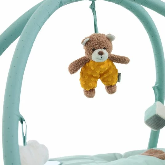 Die Spieldecke mit Spielbogen rund Bär Ben 90 cm von Sterntaler ist ein wahres Multitalent. Dein Baby findet hier einen Platz zum Spielen, Krabbeln, Entdecken und Ausruhen. Die wattierte und weiche Plüschdecke polstert den Boden und hält Kälte ab. Darüber befindet sich der Spielbogen mit Rassel, Spiegel, und niedlichen Stofffiguren. Diese kannst Du einzeln abnehmen, wenn Dein Kind damit spielen und kuscheln möchte. Zusätzlich integriertes Knisterpapier, Quietsche und Soundmodul sorgen für spannenden Spielspaß. Dein Kind kann hier viel entdecken und seine Sinne werden auf spielerische Weise geschult. Der Spielbogen lässt sich auch abnehmen und die Unterlage als Krabbeldecke verwenden. Bei Verschmutzungen kannst Du die Activity-Decke ganz bequem in der Waschmaschine reinigen.